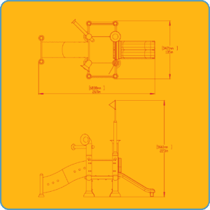 The Aquadek T410-1 is an interactive water play structure 610 sqft (185.9 sqm) of platform with a height of 4ft (1.2m). Accessed by a polyethylene tube crawler, the platform has two cantilevers, and one double lane slide for climb and slide activity.